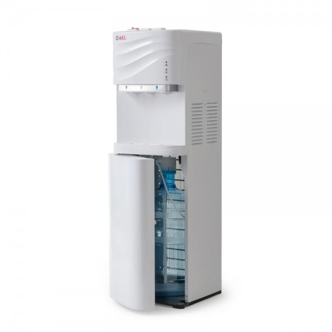 Напольный кулер для воды AEL LC-AEL-840a с нижней загрузкой и компрессорным охлаждением. Три крана с клавишами для подачи горячей, холодной и воды комнатной температуры. Клавиша подачи горячей воды с защитой от детей. Производительность охлаждения 2 л/ч, нагрева — 4 л/ч. Корпус изготовлен из пластика. Баки горячей и холодной воды изготовлены из нержавеющей стали. Кулер подходит как для домашнего, так и для офисного использования, на предприятиях и учреждениях.
