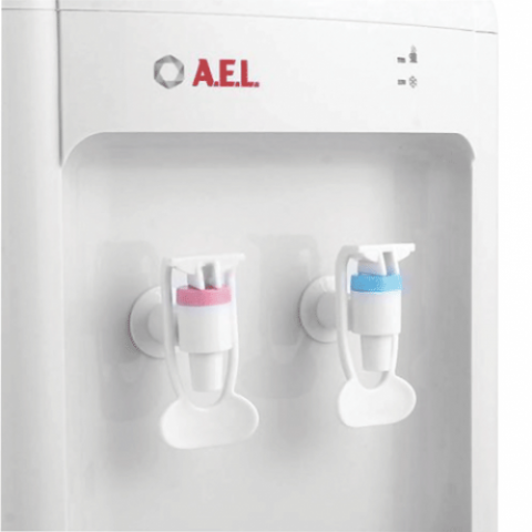 Настольный кулер для воды AEL TD-AEL-340 v.2 с верхней загрузкой бутыли и электронным охлаждением. Два крана с нажимом кружкой для подачи горячей и холодной воды. Производительность охлаждения 0,7 л/ч, нагрева — 5 л/ч. Кулер подходит как для домашнего, так и для офисного использования, на предприятиях и учреждениях.